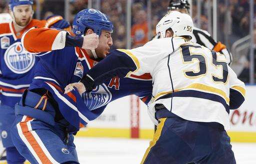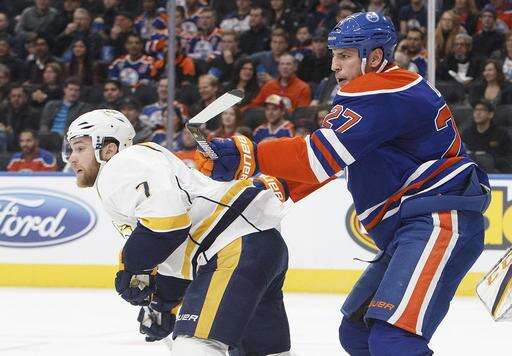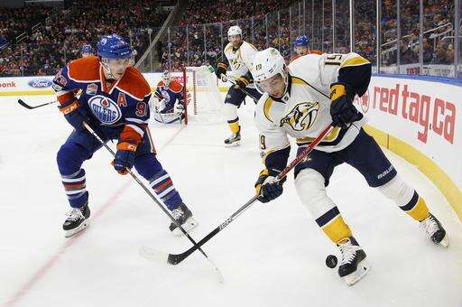 NOTES: It was the first of three meetings between the teams this season and the lone game in Edmonton. ... Nashville defenseman P.K. Subban returned to the lineup after missing 16 games with an upper-body injury. ... Rinne entered 6-0 in his last six appearances against the Oilers, with a 0.99 goals-against average and .965 save percentage. ... The game featured 88 faceoffs, "an astronomical amount," according to Oilers coach Todd McLellan.