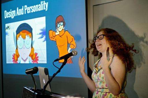 "What are nerd-girl stereotypes? They have glasses, they're shy, they're awkward, they have some freckles going on," said film-video student and artist Madison Stubbs as she flashed drawings of several, including two of the most popular: Velma from "Scooby-Doo" and Meg Griffin of "Family Guy."