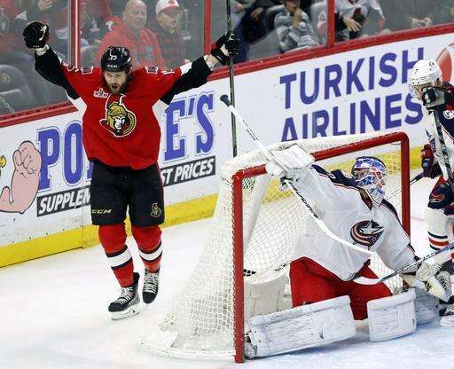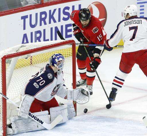 NOTES: Casey Bailey and Mark Boroweicki were scratches for the Senators. ... Marcus Hannikainen, David Savard and Markus Nitivaara were scratches for the Blue Jackets. ... Senators F Turris played in his 500th NHL game and became the 1,505th player in league history to reach that milestone.
