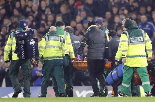 Hull City's Ryan Mason is carried on a stretcher during the English Premier League soccer match between Chelsea and Hull City at Stamford Bridge stadium in London, Sunday, Jan. 22, 2017.(AP Photo/Frank Augstein) The Associated Press