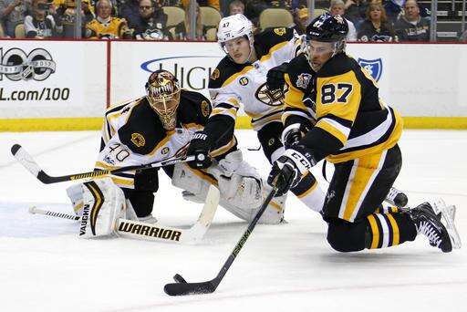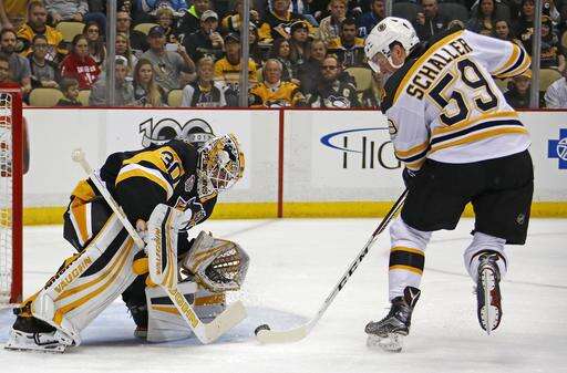 NOTES: Before the game, Sullivan said D Brian Dumoulin may play before the All-Star break. He has missed 10 games with a broken jaw. ... Crosby is eight points from 1,000 in his career. ... Crosby surpassed Jaromir Jagr and Kevin Stevens for third on the team's all-time power play goals list with 111. ... Murray is 13-0-2 in his past 15 home starts. ... Boston scratched F Jimmy Hayes and D Kevan Miller, while Pittsburgh sat F Tom Kuhnhackl and D Steve Oleksy.
