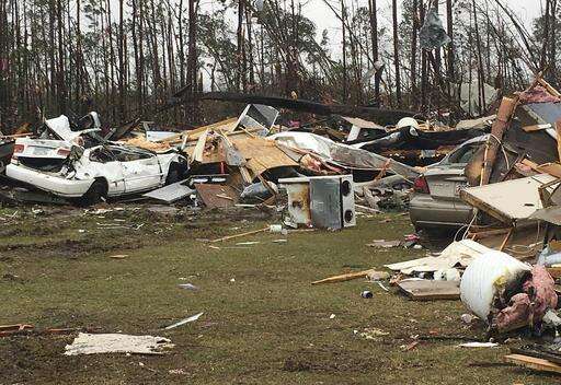 ADDS DATE - Mobile homes lie Monday, Jan. 23, 2017, destroyed by severe weather in Cook County, Ga. Gov. Nathan Deal declared a state of emergency in several counties, including Cook, that have suffered deaths, injuries and severe damage from weekend storms and expanded it Monday to include additional counties in southern Georgia. (AP Photo/Brendan Farrington) The Associated Press