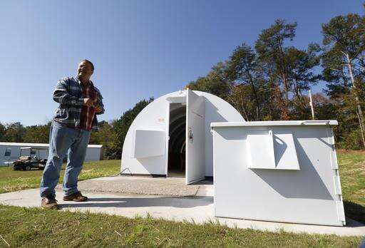 An Oct. 22, 2015 photo shows a tornado shelter built by David A. Roden, owner of Mountain View Estates in Chattanooga, for his mobile home park residents in Rossville, Ga. Experts have long warned that people in mobile homes face a greater risk of death from tornadoes, yet laws requiring storm shelters in trailer parks or public spaces such as schools are few and far between. Roden believes he is the first park owner in the southeast to offer residents a storm shelter. (Dan Henry/Chattanooga Times Free Press via AP) /Chattanooga Times Free Press via AP) The Associated Press