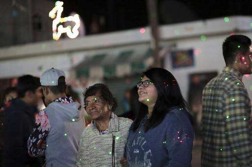In this Dec. 22, 2016 photo, Mexican youth who migrated to the U.S. as children walk through downtown Mexico City, on their first night back in their native country. More than 100 former child migrants have visited the country of their birth on five such trips sponsored by California State University, Long Beach, emotional journeys to what is often a barely remembered homeland, to reunite with family seen only in photos or on Skype. (AP Photo/Marco Ugarte)