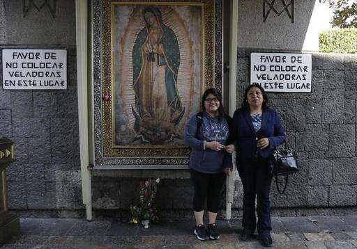 In this Dec. 23, 2016 photo, Tamara Alcala Dominguez stands with her aunt Constantina Dominguez at the Basilica of Guadalupe in Mexico City, during Alcala's first return to Mexico since she left for the U.S. as a toddler. Alcala's mother encouraged her not to speak Spanish outside the home to avoid attracting attention, she wasn't to let on that she was Mexican, and never to tell people where her mother worked. "I always felt like I always had to hide everything," Alcala said. (AP Photo/Marco Ugarte)