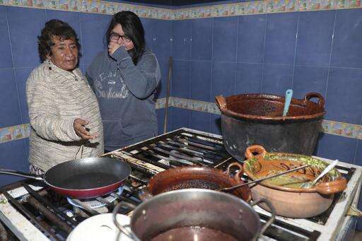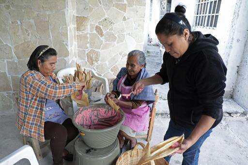 This Dec. 23, 2016 photo shows women making tamales in Molcaxac, Puebla state, Mexico. Folks here say so many working-age residents have migrated to the U.S., the town is mostly populated by the elderly and the very young. The first wave of migration started in 1942 with the bracero program, which allowed Mexicans to temporarily, and legally, work in the United States. After the program ended in 1964, people continued to go north illegally. (AP Photo/Pablo Spencer)