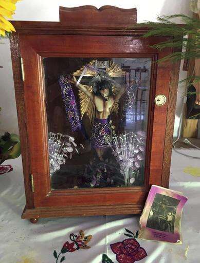 In this Dec. 23, 2016 photo, a statue of Christ stands in the home of Tamara Alcala Dominguez's mother in Molcaxac, Puebla, Mexico, during her first return home since she left Mexico as a toddler. Alcala's grandmother and great-grandmother were curanderas, traditional healers in Mexico, and she doesn't think it's a coincidence that she was drawn to the medical profession. Alcala is studying for medical school entry exams in the U.S. (AP Photo/Peter Orsi)