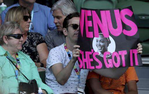 A fan of United States' Venus Williams holds up a poster during her quarterfinal against Russia's Anastasia Pavlyuchenkova at the Australian Open tennis championships in Melbourne, Australia, Tuesday, Jan. 24, 2017. (AP Photo/Aaron Favila) The Associated Press