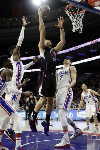 76ers: Shyamalan wore a "Trust the Process" shirt and visited with Embiid. Shyamalan's daughter sang the national anthem. Comedian Kevin Hart also watched from a courtside seat . ... Brown has yet to #RaiseTheCat after a 76ers win. "The Australians would be proud of it," Brown said.