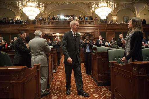 Illinois Gov. Bruce Rauner greets lawmakers as he enters the Illinois House chamber to deliver his State of the State address in the Illinois House chamber Wednesday, Jan. 25, 2017 in Springfield, Ill. Rauner called on lawmakers to work with him to resolve Illinois' budget crisis, saying both parties agree something needs to change. (Ted Schurter/The State Journal-Register via AP) The Associated Press