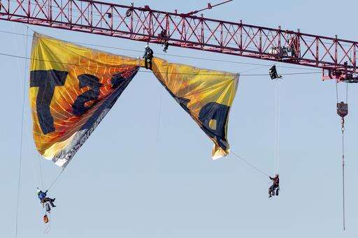 John Evans, 46, a carpenter who works on the site, said the protesters were clearly experienced climbers, noting that they were moving their legs and shifting positions to maintain their blood circulation.