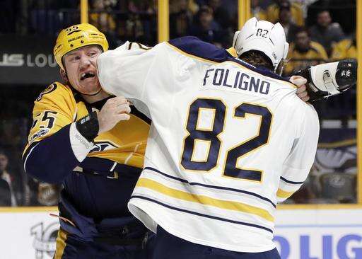 Nashville held a 4-2 lead late in the third period before Gionta scored at 14:10. Then, with Sabres goaltender Robin Lehner pulled for an extra skater, Okposo tipped home a pass from Sam Reinhart with 1:05 remaining to send the game into overtime.