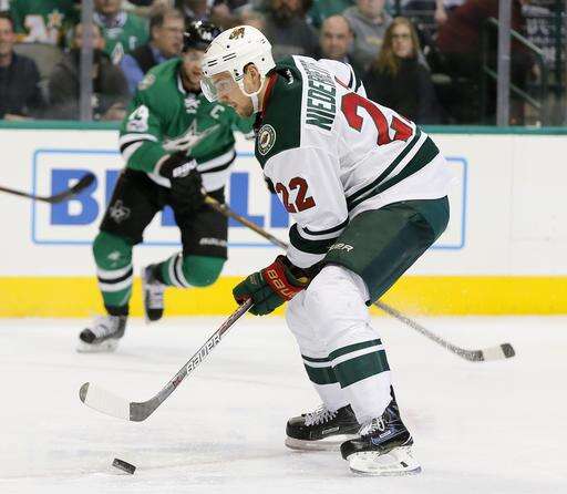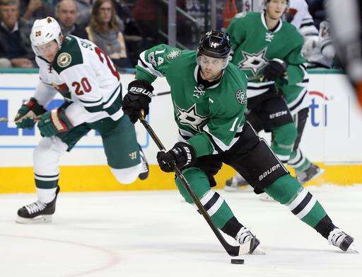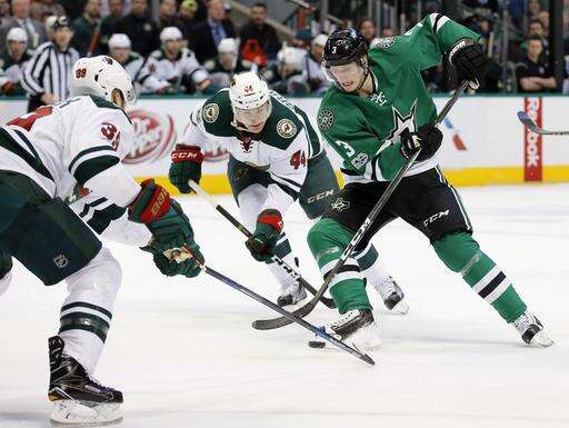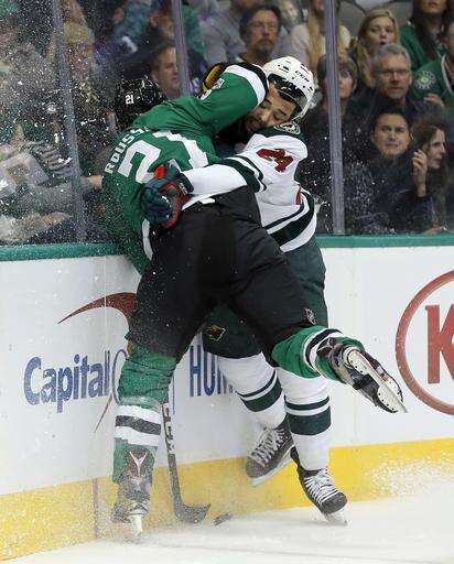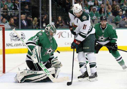 NOTES: The Wild had won in overtime at Dallas just 10 days earlier. ... Roussel, the NHL leader in penalty minutes, reached 100 when he went off for slashing at 19:20 of the first period. ... Ten of Eaves' 18 goals have come on the power play. ... Pominville has two goals and four assists in the past four games. . Koivu has six goals and 10 assists in his past 14 games. ... Niederreiter has three goals and four assists in the past six, and Granlund is on a career-high eight-game point streak (one goal, eight assists. ... Dallas' opponents have scored first in six straight games. The Stars are 1-3-2 in that stretch. . Dallas C Radek Faksa (lower-body injury) missed his first game this season, but Seguin kept up his perfect attendance despite a bout with the flu. Benn played despite a broken nose caused by a high stick in Saturday's game.