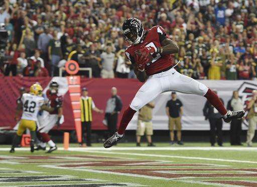 FILE - In this Oct. 30, 2016, file photo, Atlanta Falcons wide receiver Mohamed Sanu makes a touchdown catch against the Green Bay Packers during an NFL football game in Atlanta. Sanu is one of four Rutgers players expected to start in the Super Bowl between the Falcons and the New England Patriots. (AP Photo/Rainier Ehrhardt, File) The Associated Press
