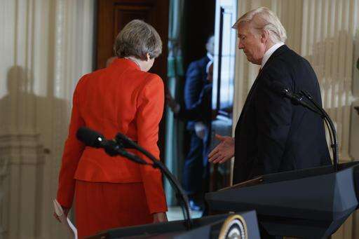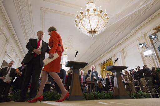 WASHINGTON (AP) - Prime Minister Theresa May went to Washington, and President Donald Trump extended the hand of friendship. Literally.