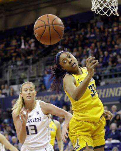 The Golden Bears pulled to 13-10 on a three-point play by Kristine Anigwe, but Washington responded with a 10-2 run, extending the lead to 23-12 on Katie Collier's layin.