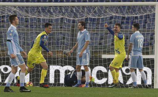 Lazio's hopes of qualifying for the Champions League took a blow as it conceded a last-gasp goal at home to Chievo Verona, whose goalkeeper Stefano Sorrentino was in imperious form.