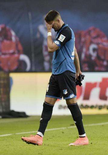 Hoffenheim's Sandro Wagner leaves the field after he received a red card during the German first division Bundesliga soccer match between RB Leipzig and TSG 1899 Hoffenheim in Leipzig, Germany, Saturday, Jan. 28, 2017. (AP Photo/Jens Meyer) The Associated Press