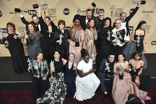 The cast and crew of "Orange is the New Black" pose in the press room with the awards for the award for outstanding performance by an ensemble in a comedy series at the 23rd annual Screen Actors Guild Awards at the Shrine Auditorium & Expo Hall on Sunday, Jan. 29, 2017, in Los Angeles. (Photo by Jordan Strauss/Invision/AP)