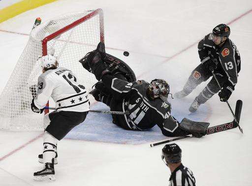 Atkinson scored three goals Sunday, including an unassisted, tying goal in the final game as the Metropolitan Division came back to beat the Pacific Division 4-3.