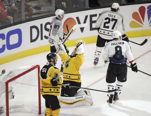Columbus' Cam Atkinson scored the tying goal five seconds earlier for the Metropolitans in the four-team divisional tournament format of wide-open hockey introduced to this talent-laden exhibition last season. Washington goalie Braden Holtby blanked the Pacific over the final 10 minutes to secure the win for his 11-man bunch, which will split a $1 million prize.