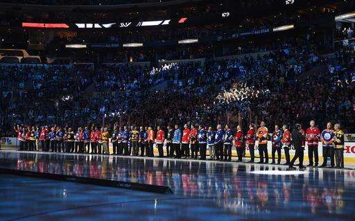 The All-Stars got an additional thrill before the game when roughly half of the 100 greatest players in NHL history lined up on the ice and shook hands with the current players during introductions. The greats then dropped a ceremonial first puck for each of the 44 All-Stars.
