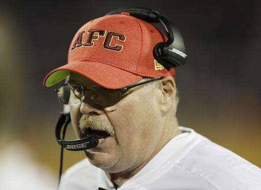 AFC head coach Andy Reid, of the Kansas City Chiefs, talks on the sidelines during the first half of the NFL Pro Bowl football game Sunday, Jan. 29, 2017, in Orlando, Fla. (AP Photo/Chris O'Meara) The Associated Press