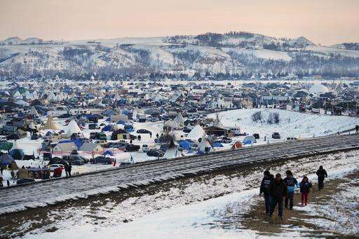 FILE - This Dec. 3, 2016, file photo shows the Oceti Sakowin camp where people have gathered to protest the Dakota Access oil pipeline near Cannon Ball, N.D. The first seasonal flood outlook from the National Weather Service indicates minor spring flooding is almost certain in the area of southern North Dakota where pipeline opponents are camping. The Friday, Jan. 27, 2017, outlook says there's little chance of major flooding but that parts of the camp area could be under water. (AP Photo/David Goldman, File) The Associated Press