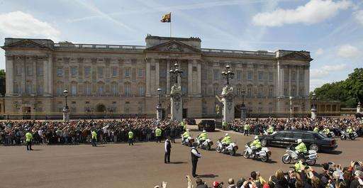 FILE - In this file photo dated Tuesday, May 24, 2011, The Royal Standard flag flies from above Buckingham Palace in London as the convoy carrying U.S. President Barack Obama arrives. The invitation to U.S. President Donald Trump for a state visit, one of the highest honors it can bestow on a visiting statesman where the queen acts as personal hostess with the traditional pomp and ceremony involved, has provoked a passionate debate, Tuesday Jan. 31, 2017. (AP Photo/Kirsty Wigglesworth, FILE) The Associated Press