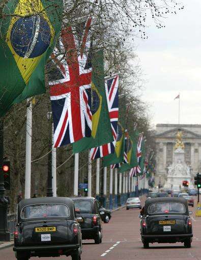 FILE - In this file photo dated Monday March 6, 2006, British and Brazilian flags hang from flag poles along The Mall in London with Buckingham Palace in background, ahead of a state visit by Brazilian President Luiz Inacio Lula da Silva. The invitation to U.S. President Donald Trump for a state visit, one of the highest honors it can bestow on a visiting statesman where the queen acts as personal hostess with the traditional pomp and ceremony involved, has provoked a passionate debate, Tuesday Jan. 31, 2017. (AP Photo/Kirsty Wigglesworth, FILE) The Associated Press