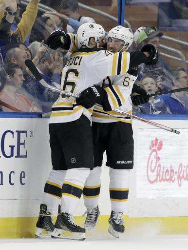 Boston also got goals from Patrice Bergeron, David Krejci and Frank Vatrano. Brad Marchand had two assists late in the second after possibly getting away with a penalty.