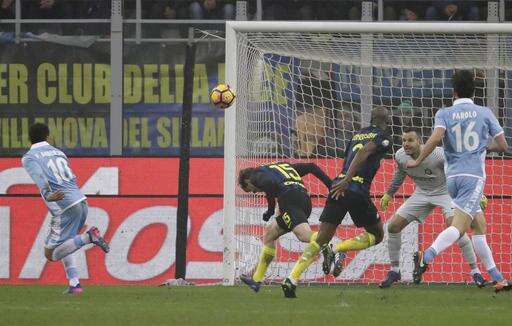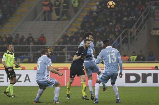 Inter Milan's Marcelo Brozovic scores with an header during an Italian Cup quarterfinal soccer match between Inter Milan and Lazio, at the San Siro stadium in Milan, Italy, Tuesday, Jan. 31, 2017. (AP Photo/Luca Bruno) The Associated Press