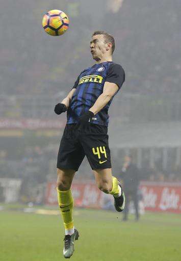 Inter Milan's Ivan Perisic jumps for the ball during an Italian Cup quarterfinal soccer match between Inter Milan and Lazio, at the San Siro stadium in Milan, Italy, Tuesday, Jan. 31, 2017. (AP Photo/Luca Bruno) The Associated Press