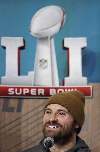 He handed the hat to Atlanta receiver Julio Jones who thanked him and placed it beside him on the podium next to his seat.