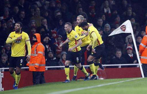 LONDON (AP) - Watford dealt a major blow to Arsenal's Premier League title hopes as it secured a surprise 2-1 victory at the Emirates Stadium on Tuesday.
