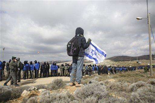 A settler holds an Israeli flag outside the West Bank outpost of Amona, Wednesday, Feb. 1, 2017. Israeli forces have begun evacuating a controversial settlement Amona, which is the largest of about 100 unauthorized outposts erected in the West Bank without permission but generally tolerated by the Israeli government. (AP Photo/Oded Balilty) The Associated Press