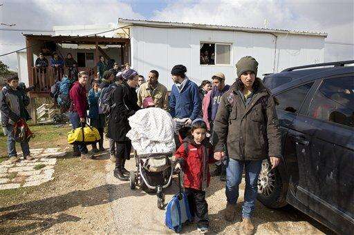 Settler families leave their homes in the West Bank outpost Amona Wednesday, Feb. 1, 2017. Israeli forces have begun evacuating a controversial settlement Amona, which is the largest of about 100 unauthorized outposts erected in the West Bank without permission but generally tolerated by the Israeli government. (AP Photo/Sebastian Scheiner) The Associated Press
