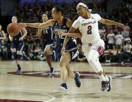 Temple (16-5, 6-2) only trailed 6-5 before UConn scored the next 13 points to blow the game open. The Huskies had seven consecutive layups in that run. Alliya Butts' 3-pointer with 2:08 left in the first quarter stopped the Huskies spurt briefly before they closed the period with the final six points to go up 25-8.