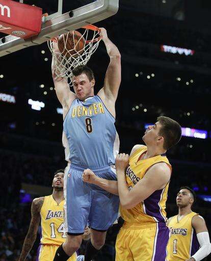 Lakers: They have just one home game in the next 25 days, with a five-game East Coast road trip beginning Thursday. ... Russell hadn't played since getting hurt on the second possession of a win over Indiana on Jan. 20. ... David Beckham watched the game at courtside. So did current LA Galaxy stars Giovani Dos Santos and Romain Alessandrini, the French midfielder officially signed from Marseille earlier in the day. ... Timofey Mozgov had 12 points against his former team. The Russian was with Denver from 2010-15.