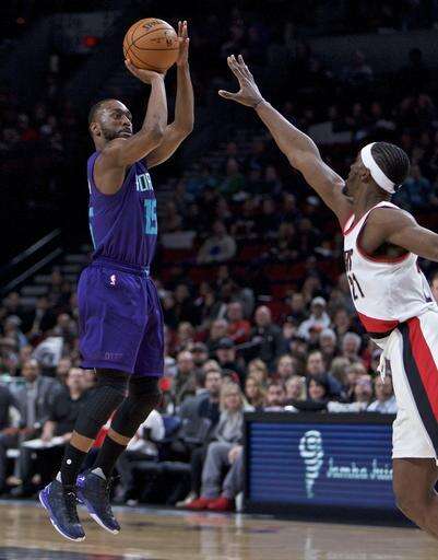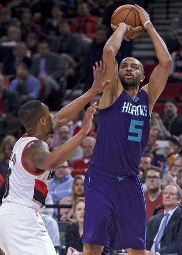 Kemba Walker scored 22 points for the Hornets and moved into third place on the team's career scoring list. Nicolas Batum, who spent his first seven seasons in Portland, added 18 points and eight rebounds.