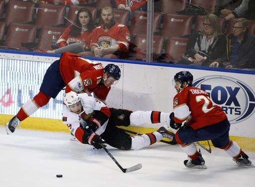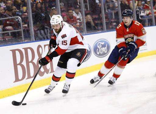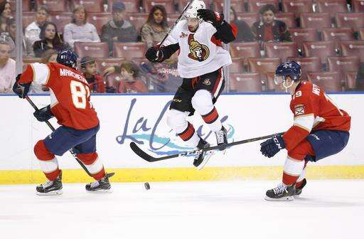 NOTES: Panthers backup goalie James Reimer was scheduled to start, but his wife, April, gave birth to their daughter, Nevaeh Adelyn May Reimer, earlier in the day. ... Panthers C Vincent Trocheck had four points Sunday in his first All-Star Game. ... The Panthers waived D Dylan McIlrath and C Paul Thompson. ... Senators C Zack Smith has a career-high 13 assists after notching one on Ottawa's fourth goal.