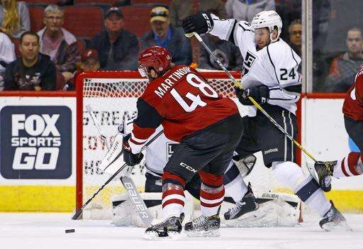 Arizona scored first when Connor Murphy slammed a shot into a crowd in front of the Los Angeles net. Martinook controlled the deflection and sneaked the puck past Budaj 8:48 into the first period.