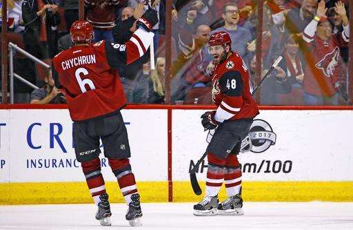 NOTES: Arizona's Shane Doan passed Steve Yzerman for fifth on the list of most games played (1,514) with a single franchise. ... Longtime Kings play-by-play broadcaster Bob Miller suffered a mild stroke over the All-Star weekend. The team says Miller is recovering and in good spirits, but it's unknown when he will return to broadcasting. ... Los Angeles placed D Matt Greene on injured reserve. Greene had been battling various injuries, including to his back and groin. Those injuries could be career-threatening. Greene played in only three games last season due to a shoulder injury.