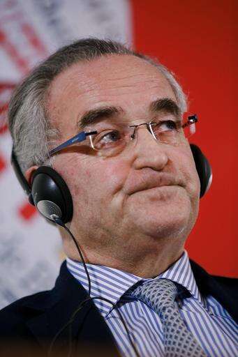 Albrecht Boeselager, Grand Chancellor of the Knights of Malta, answers questions during a press conference at the Foreign Press Club in Rome, Thursday, Feb. 2, 2017. The Knights of Malta, an ancient Catholic lay order, seeks to chart its future after an extraordinary upheaval involving a condom free distribution scandal, a rogue cardinal and Pope Francis. The Knights' grand chancellor, ousted over the condom scandal, was reinstated after Pope Francis reassured the Knights of Malta about its sovereignty, even as a special papal delegate will work to ensure the "spiritual renewal" of its members. (AP Photo/Domenico Stinellis)