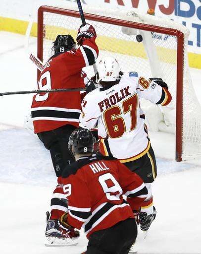 Palmieri, who upset the Flames by taking down Troy Brouwer in the waning seconds of the first period, made it 3-2 with 24 seconds left in the second. Elliott made a save on Taylor Hall's initial shot from the left circle. The rebound hit off Miles Wood and Palmieri knocked it into the net with the shaft of his stick.