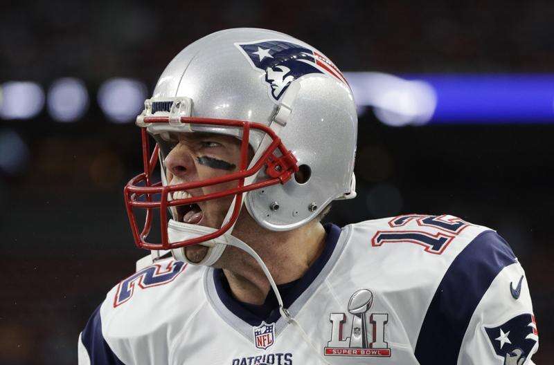 New England Patriots' Tom Brady reacts after a two-point conversion, during the second half of the NFL Super Bowl 51 football game against the Atlanta Falcons, Sunday, Feb. 5, 2017, in Houston. ASSOCIATED PRESS