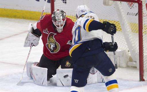 NOTES: St. Louis has won five of its last seven road games after winning just five of its first 17. ... Ottawa C Curtis Lazar was a healthy scratch for the second time in four games. D Fredrik Claesson also was a healthy scratch for the Senators. ... St. Louis scratched RW Nail Yakupov, RW Dmitrij Jaskin and D Carl Gunnarsson.