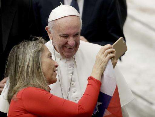 A faithful takes a selfie of herself with Pope Francis during his weekly general audience in Paul VI Hall, at the Vatican, Wednesday, Feb. 8, 2017. (AP Photo/Andrew Medichini) The Associated Press