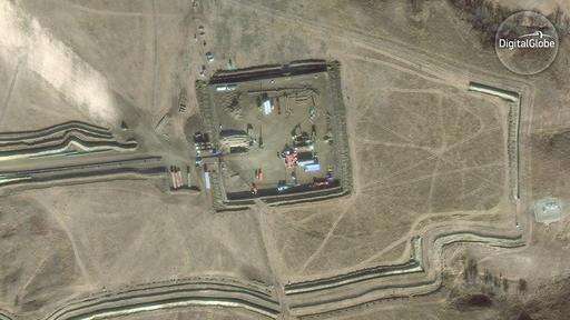 FILE - This Nov. 25, 2016, file satellite image taken by DigitalGlobe shows the construction site of the Dakota Access pipeline near Cannon Ball, N.D. Opponents of the pipeline called for protests around the world Wednesday, Feb. 8, 2017, as the Army prepared to greenlight the final stage of the $3.8 billion project's construction. The Army said Tuesday, Feb. 7, that it will allow the four-state pipeline to cross under a Missouri River reservoir in North Dakota, the last big chunk of construction. (DigitalGlobe via AP, File)