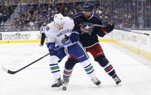 NOTES: The Blue Jackets were shut out at home for the third time this season. ... Vancouver LW Sven Baertschi was out after taking a blindside hit from Nashville's Cody McLeod on Tuesday. The league ruled the hit was the result of an accidental collision. ... Columbus RW Oliver Bjorkstrand was an emergency recall from Cleveland of the American Hockey League in case Josh Anderson had to sit out after undergoing concussion protocol from a hit Tuesday night. The 21-year-old Bjorkstrand, the Monsters' leading scorer, was scratched when Anderson was cleared to play. ... The game was the first of seven straight at home for the Blue Jackets. It was the second of a six-game road trip for the Canucks.